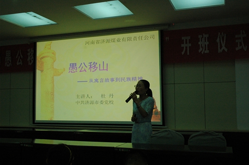 之后,济源市委党校讲师杜丹带来了题为《愚公移山—从寓言故事到民族精神》的精彩讲座,从口口相传的民间传说吕三太“别倒山”到《》愚公移山的寓言神话,从近代蔡元培,傅斯年对于愚公移山精神的不断阐释到毛泽东对愚公移山精神多次引用对中国社会发展的深刻影响。她用亲切朴实的语言,严谨科学的态度,讲述了愚公移山精神成为民族精神的其客观性和必然性。之后,她有针对性地援引济源煤业公司64年的发展历程,将愚公精神从寓言故事升华到民族精神,再具体联系到济煤精神,鼓励大家要不断学习传承和弘扬愚公精神,再创济煤辉煌。杜丹老师精彩的讲解赢得了广大干部职工的一致好评。